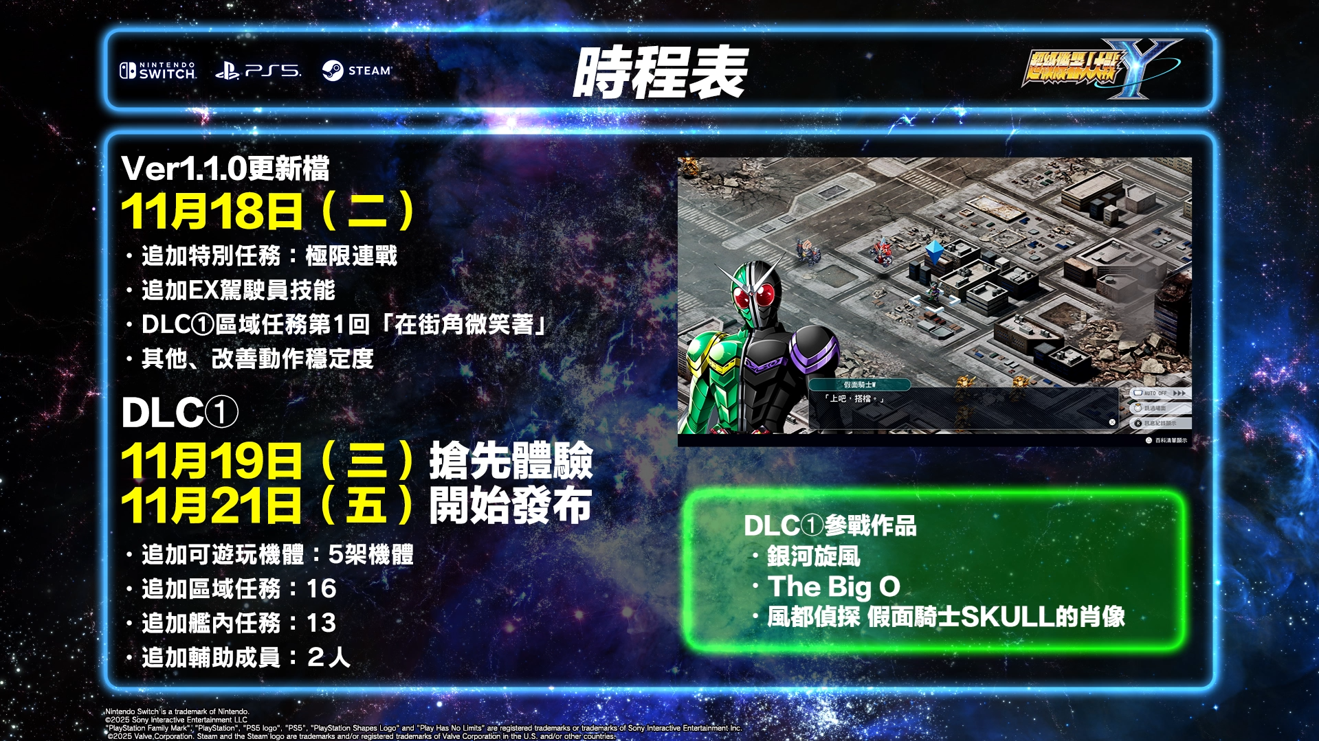 【2025年11月12日】萬代南夢宮娛樂宣布,家用主機遊戲《超級機器人大戰》系列最新作品《超級機器人大戰Y》的DLC①即將於11月21日發布。