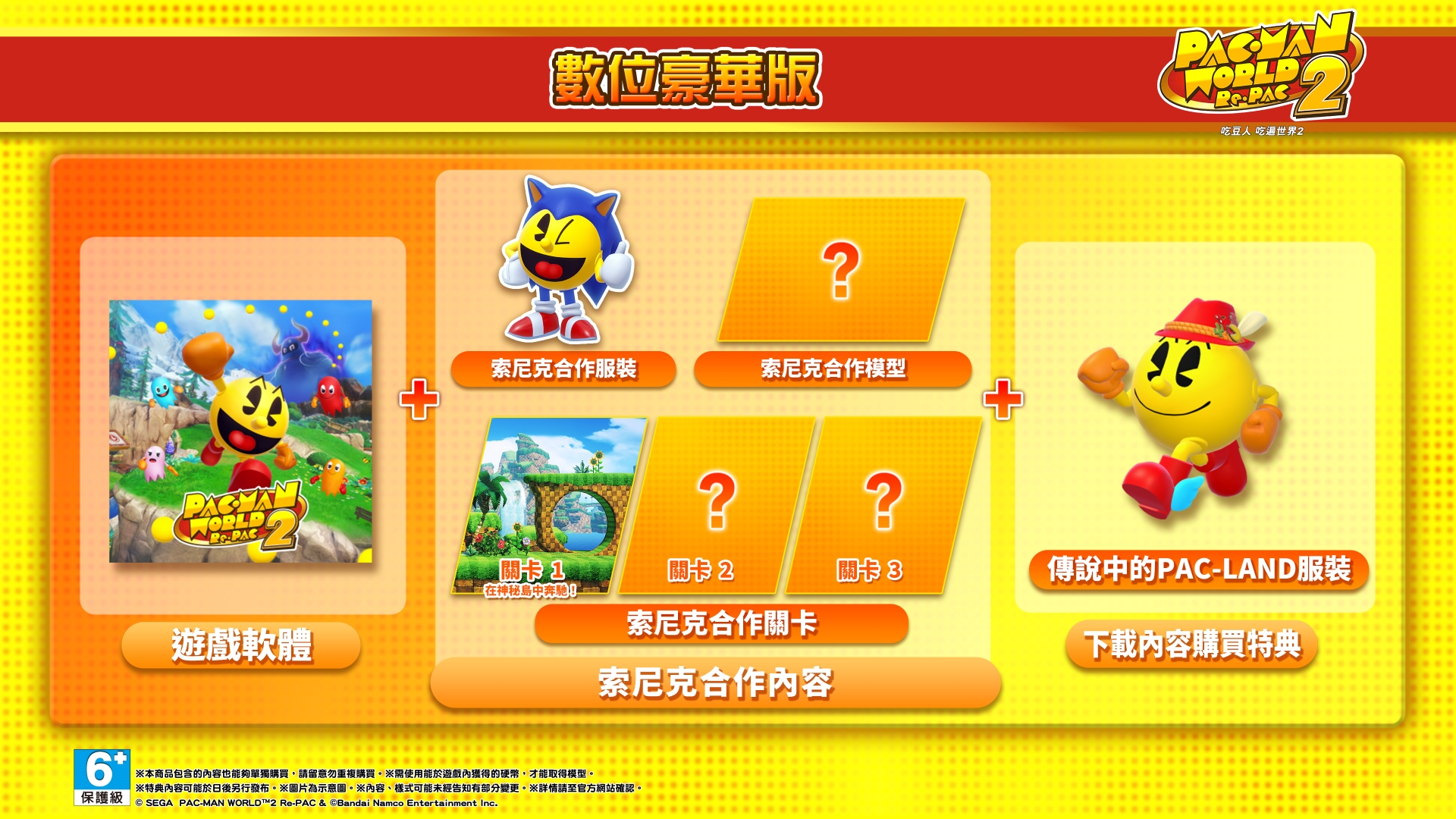 除了《吃豆人 吃遍世界2》的遊戲軟體以外,包含了合作關卡及合作服裝等「下載內容合作組合包」的「數位豪華版」即將登場。